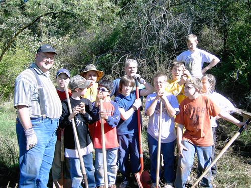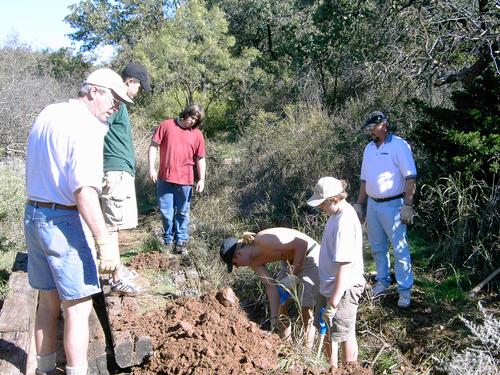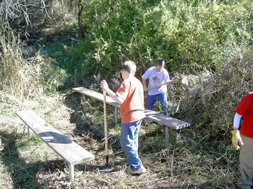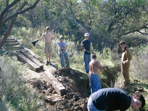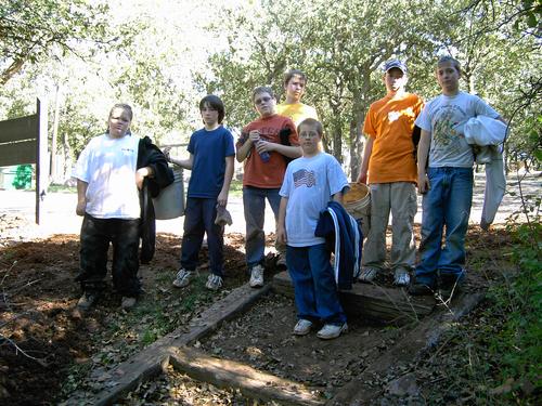 Troop 80 rebuilt the nature trail at Quartz Mountain State Park for its service project to help the Park Rangers (and to pay some of its camping fees). Troop 80 helped build part of this trail in the late 1990's. Trail work included installing railroad tie walls to keep the creek from cutting into the trail and rebuilding bridge supports, and repairing damage caused by erosion.