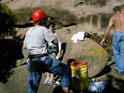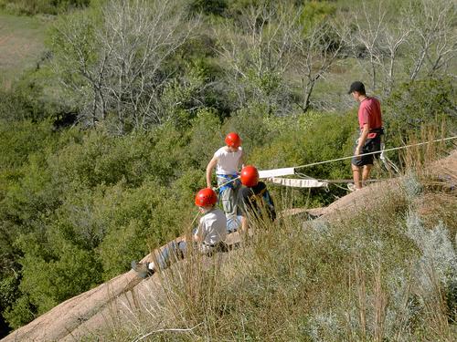 The scouts and leaders look forward each year to rappelling and climbing at Baldy Point. This area was acquired for the Quartz Mountain State Park by the Access Fund.