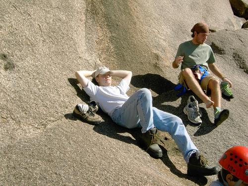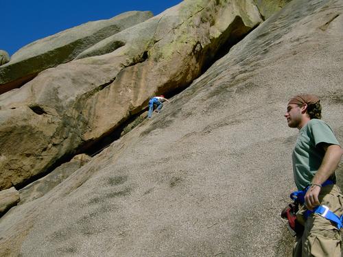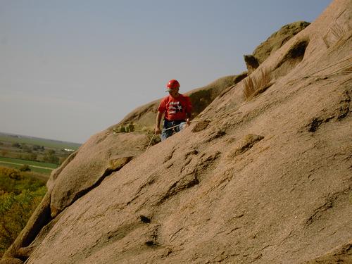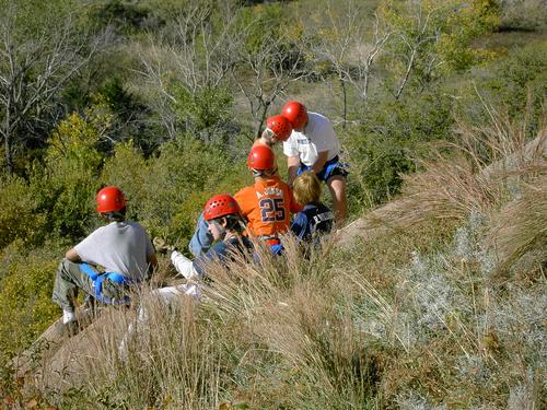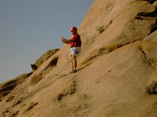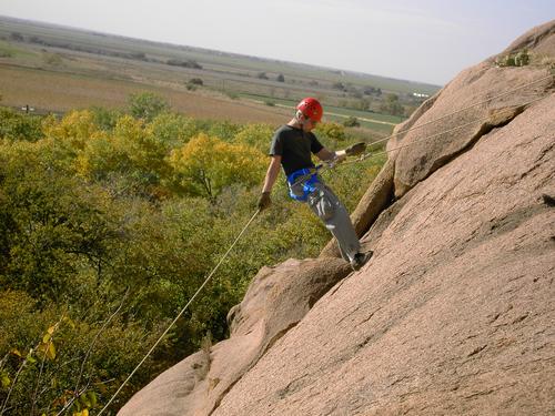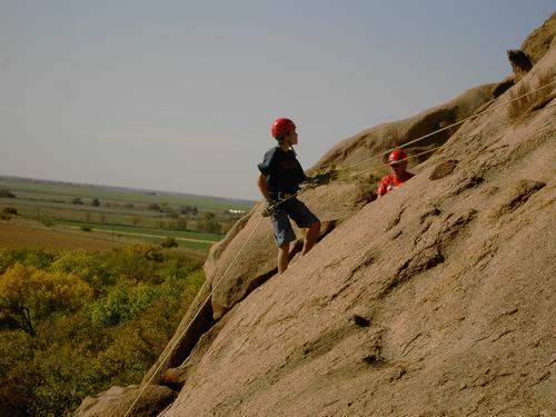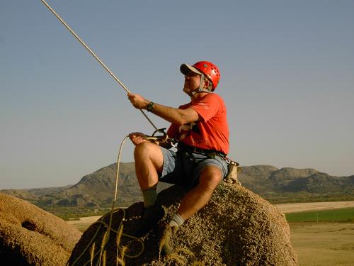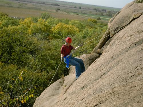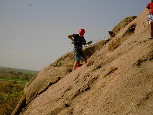 The scouts and leaders look forward each year to rappelling and climbing at Baldy Point. This area was acquired for the Quartz Mountain State Park by the Access Fund.