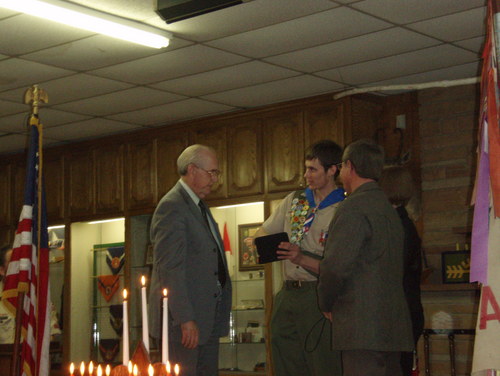 Walter Wolfram presenting Eagle award to Jarrod Carnes |