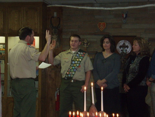 Mr. Walker reciting the Oath of the Eagle to Trevor Tarbet |