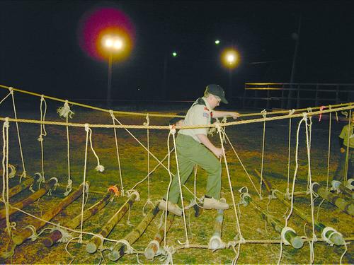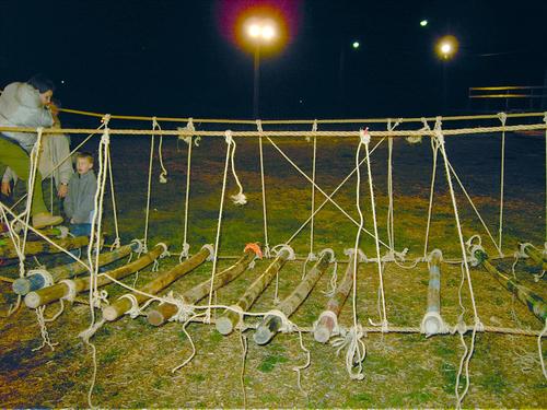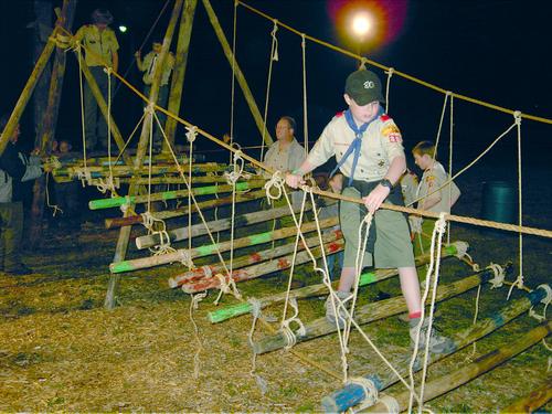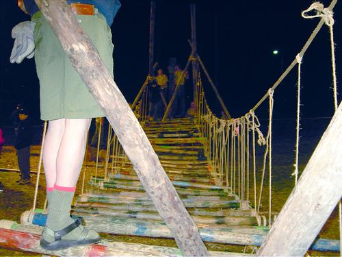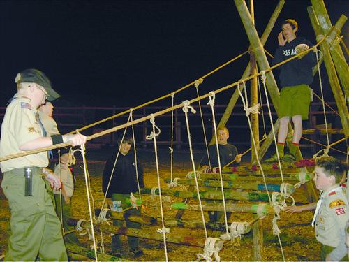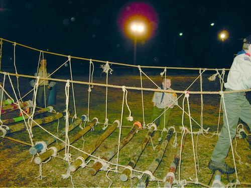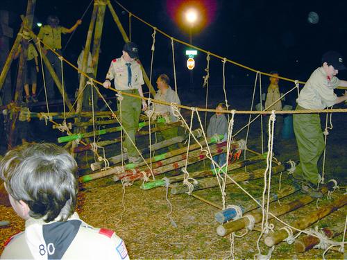 The following suspension bridge was lashed by members of Troop 80 during it meeting on March 22, 2005.