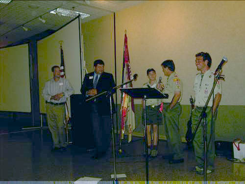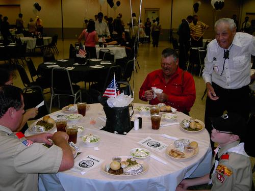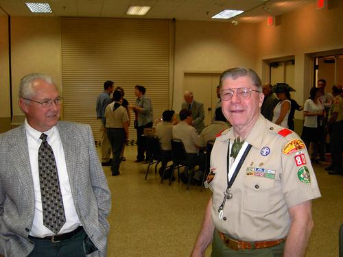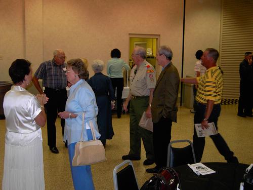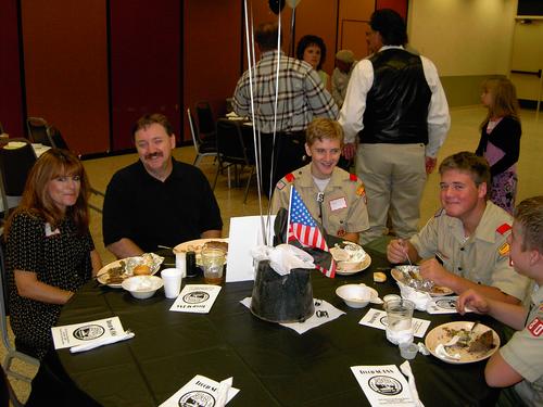 | Walter Wolfram presenting plaque to Walter Skipworth and Lou Skipworth commemorating Walter Skipworth Committee Room. | More old times stories. Justin Smiley (90's), Peter Dekeratry (80's), Joseph Gettles (current), and Michael Walker (00's) all tell the bare truth and no exaggeration on their Troop 80 experiences to James Savage. |