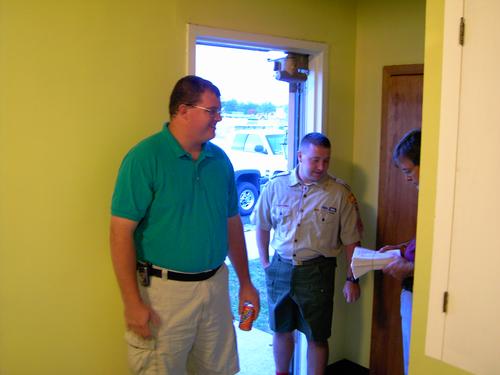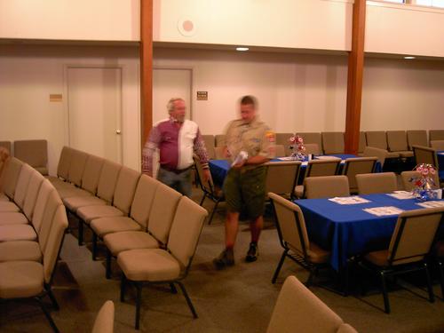 | Jim McKee (1970), Drew Skipworth (Committee), Walter Skipworth (Committee), Nick Skipworth (1997), Courtney Crisler (1958). Chuck Morgan (1969) tries to read the list of Eagles. | John Standish (Assistant Scoutmaster), Dale Denny (1962), Randall Hart (1985), Chris Worthen (1987), Jim Burton (1984), and Harry Haiduk (Committee). |