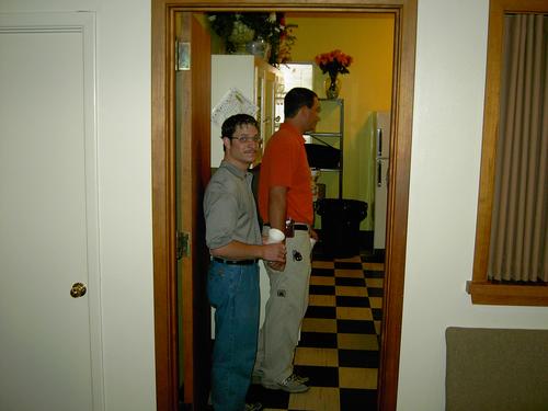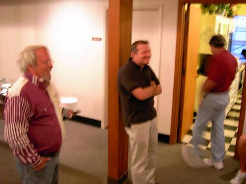 | Steve Tunnell (1973), James Spencer (1995) getting ready. | Vance McSwain (1966), Jonathan Musser (2003), with James Savage (1966) looking on. James Spencer (1995) is really the Flash. |