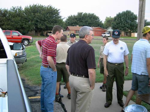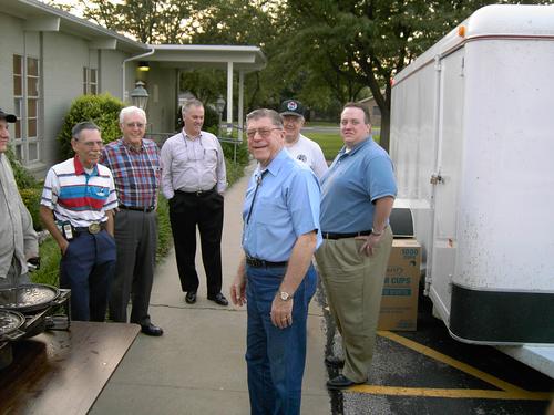 | Fred Poppe (Committee) and Walter Skipworth (Assistant Scoutmaster) juicing it up while James Savage (1966) looks on, hoping he gets some too. John Standish (Assistant Scoutmaster) sulking since he is not getting any. | David Eck (Committee), Jonathan Musser (2003), Brad Eck (1996), Randy Smiley (Assistant Scoutmaster), Brent Naylor (2000) and James Spencer (1996). |