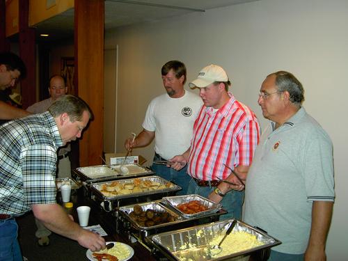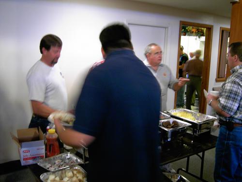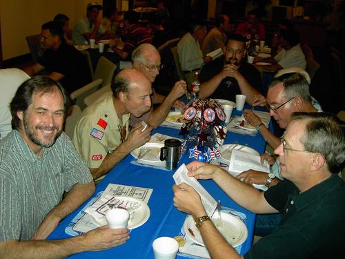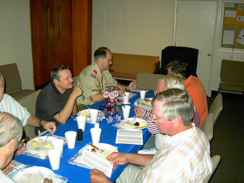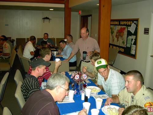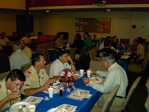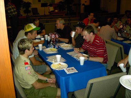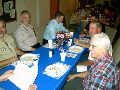 | Bryan Sena (2004) chowing down. Henry Sena (Assistant Scoutmaster), Duane Glasco (Committee) and Rudy Dekeratry (Committee). | Steve Bailey (Assistant Scoutmaster), David Worthen (Assistant Scoutmaster), Robert Thurston (1990), John Blakley (Assistant Scoutmaster), David Thurston (Assistant Scoutmaster, Peter Dekeratry (1987), Doug Walker (Committee). |