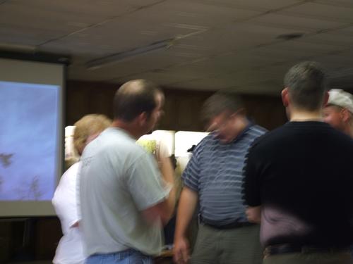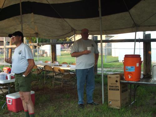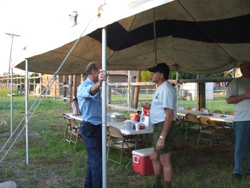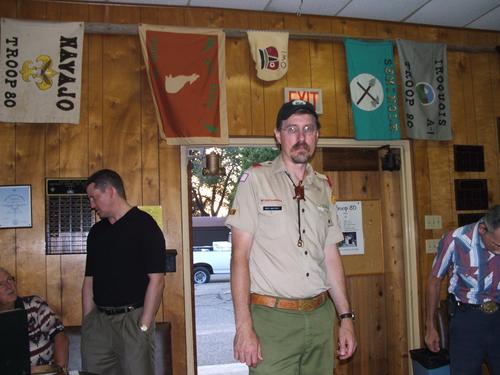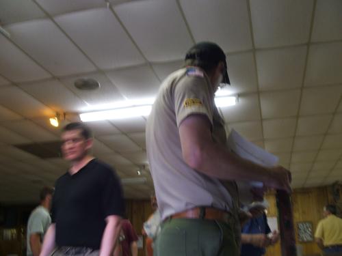 | Jim Burton bringing Jon Oden and Marshall Cutright, Sr. up to speed. | Randall Hart doing something behind the Scoutmaster's back (naw, that would never happen). |