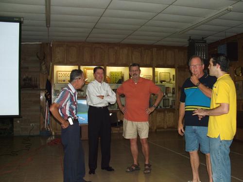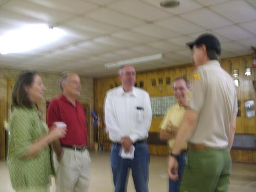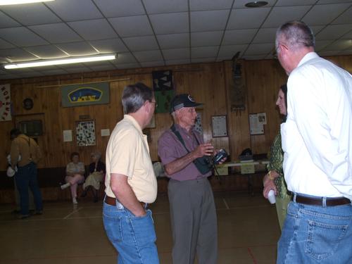 | Cheryl Skipworth listens to Darrell Skipworth, Charlie Phillips, Chuck Morgan and Eric Wolfram. I am sure only the truth is being told here. | Rich Kritselis catches up with Jon Oden and David Worthen, while Warren Howard reminisces with Steve Aplin. |